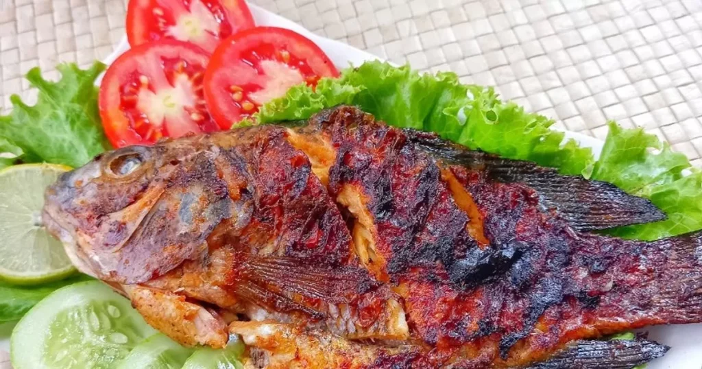 Ikan bakar Jimbaran adalah hidangan khas Bali yang terdiri dari ikan segar (seperti kakap, baronang, atau gurami) yang dibakar dengan olesan bumbu khas Bali berbasis rempah dan sambal kecap pedas-manis. Ciri khasnya adalah aroma asap dari proses pembakaran dan cita rasa bumbu yang meresap hingga ke dalam daging ikan. Biasanya disajikan dengan nasi putih, sambal matah, plecing kangkung, dan lalapan, serta dinikmati di tepi pantai.